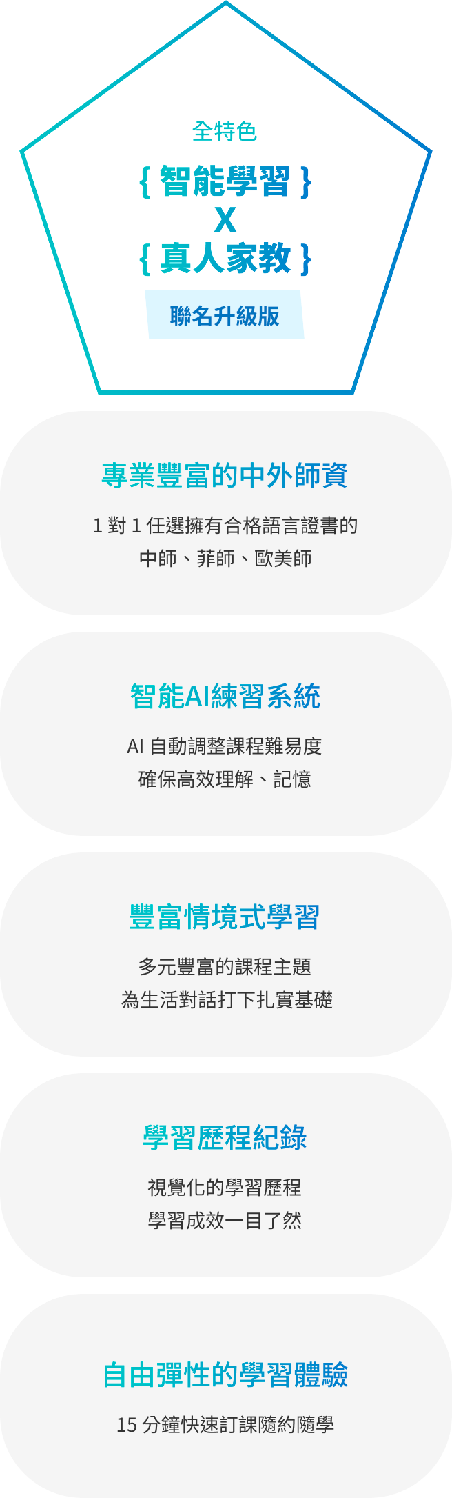 適合需要大量課程快速學習的學習者,透過菲律賓教師的專業教學,聽說讀寫全面補強,引導你從中文腦逐步進化成雙語腦。